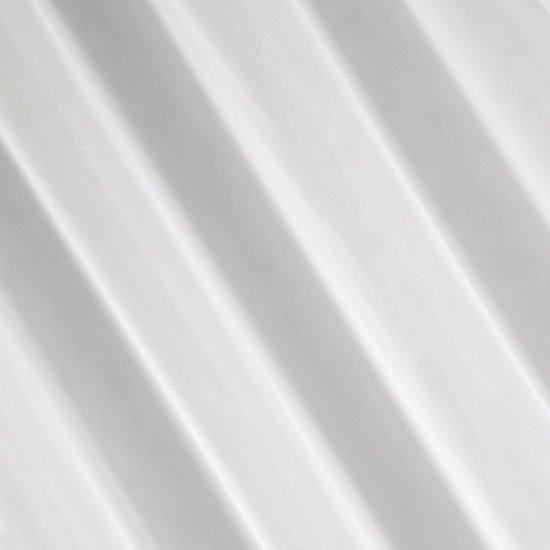 Čisto biela moderná záclona Lucy 300x250cm. Je opatrená striebornými kružkami pre zavesenie na garnižu.