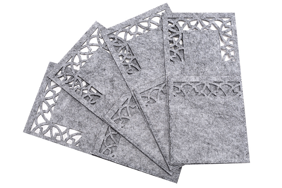 Set obsahuje 4 kusy sivých púzdier z mäkkého polyesteru pripomínajúce plsť.