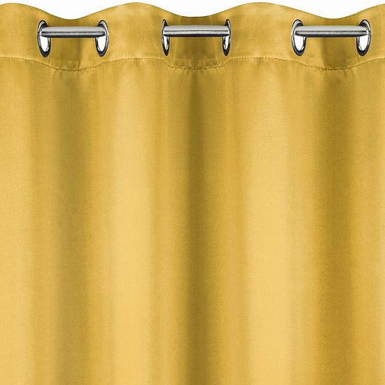 Hotové blackout závesy stačí zavesiť na garnižu pomocou kovových krúžkou striebornej farby.